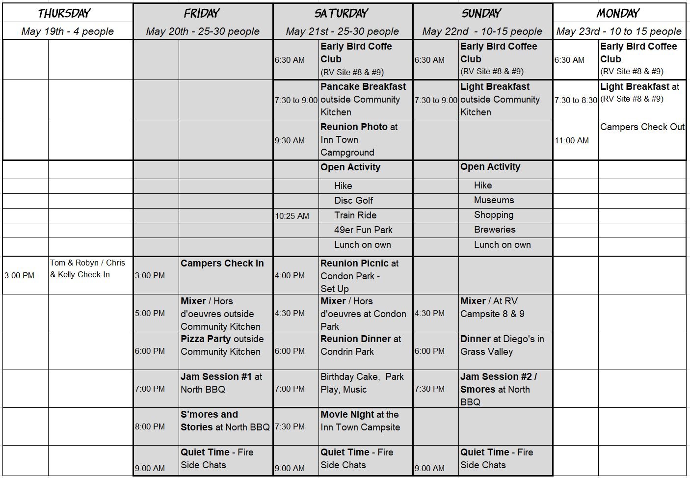 Reunion Schedule